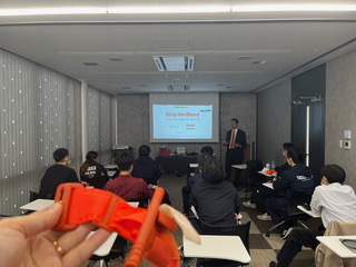 (出血患者に対するターニケット(止血帯)使用など基本的な止血法を学ぶコース。米国外科学会の修了証が発行されました)